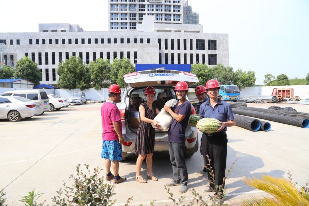 连日来, 烈日炎炎,我市气温持续在39℃左右,7月26日,公司工会组织“送清凉”活动,给工地一线职工送去了白糖、西瓜、绿豆、风油精、藿香正气水和清凉油等防暑用品。同时对各项目部负责人提出了要求,要求他们做好职工防暑工作,合理安排好施工人员的作息时间,调整好饮食,改善劳动条件,抓好安全生产,确保一线职工身心健康,平安度夏。