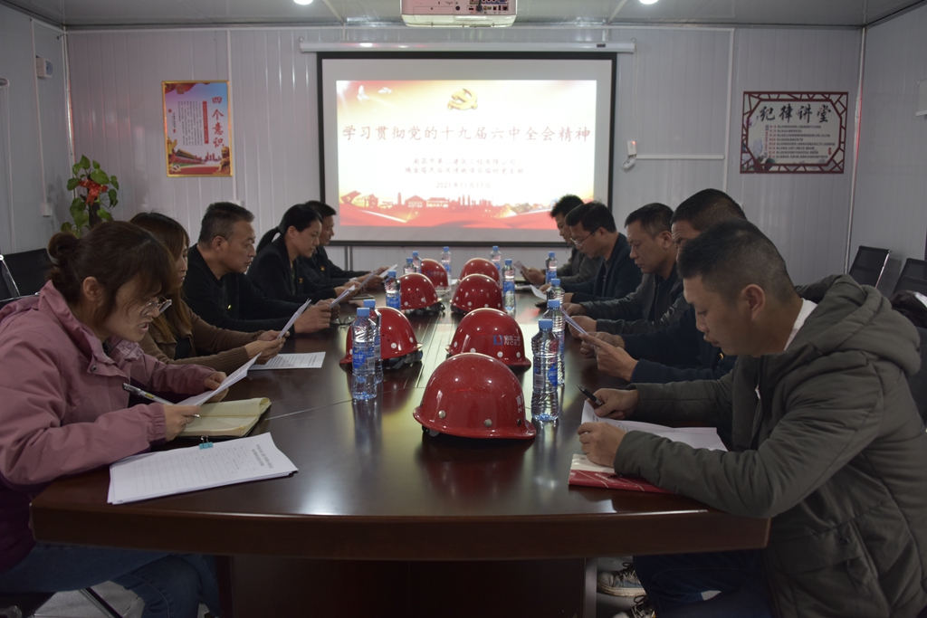 为把学习贯彻党的第十九届六中全会精神转化为广大职工以史为鉴、开创未来、埋头苦干、勇毅前行的动力,公司党委办公室和第一党支部根据党委工作部署,于前一日率机关部分党员下到市重点工程“南昌市绳金塔民俗风情街”项目工地现场,与工地临时党支部一起开展党的第十九届六中全会精神宣贯工作,激发公司上下同心同德,以党的第十九届六中全会精神为指导,为全面完成年度工作任务努力工作。
