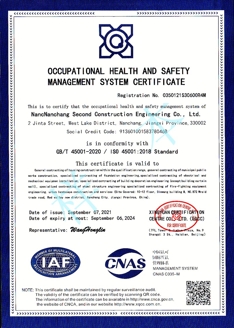 职业健康安全管理体系认证证书